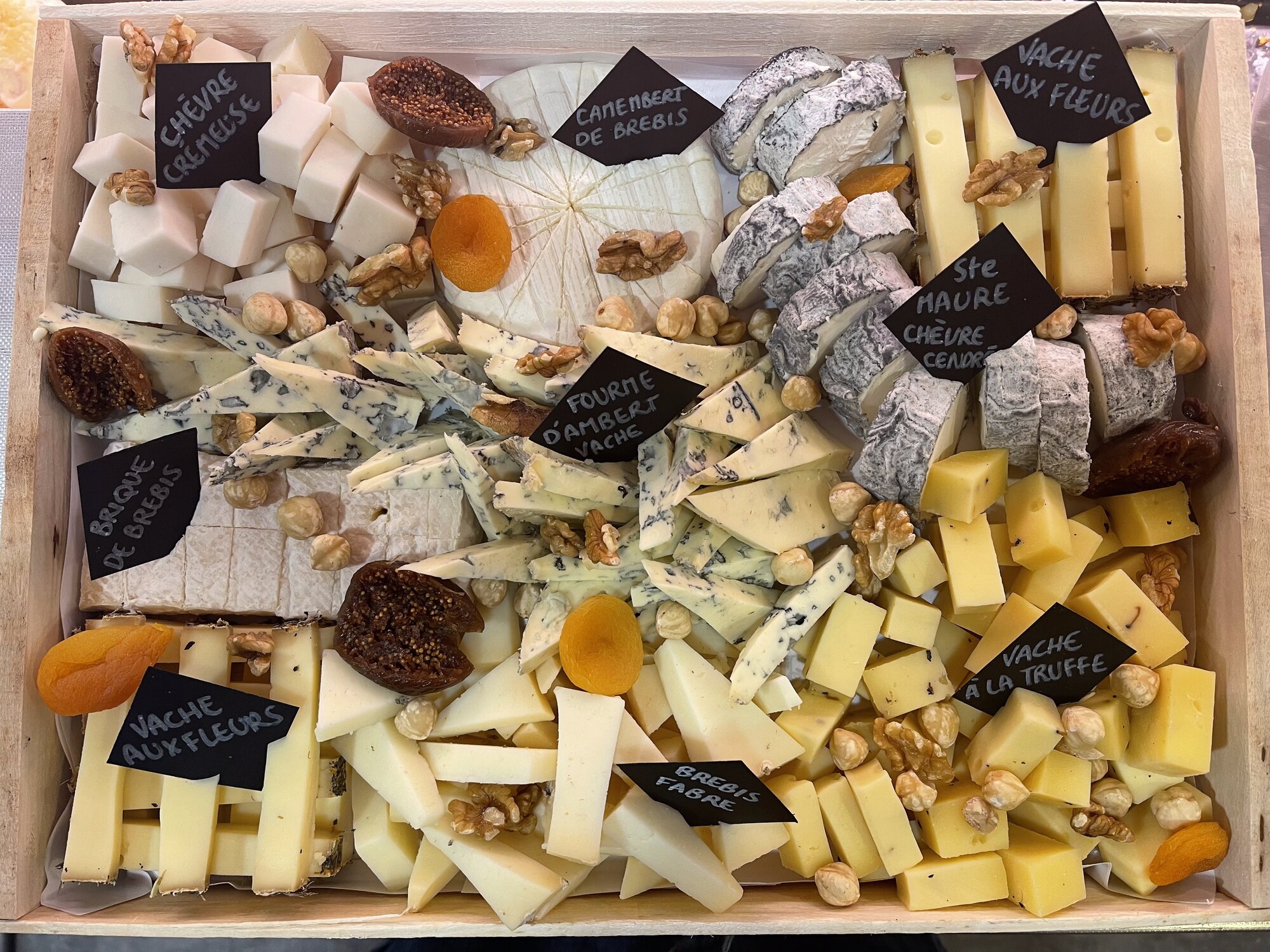 Chaque plateau est dressé le jour même, avec notre sélection de fromages et charcuteries. Nous composons sur mesure selon vos envies, votre budget et le nombre de convives.